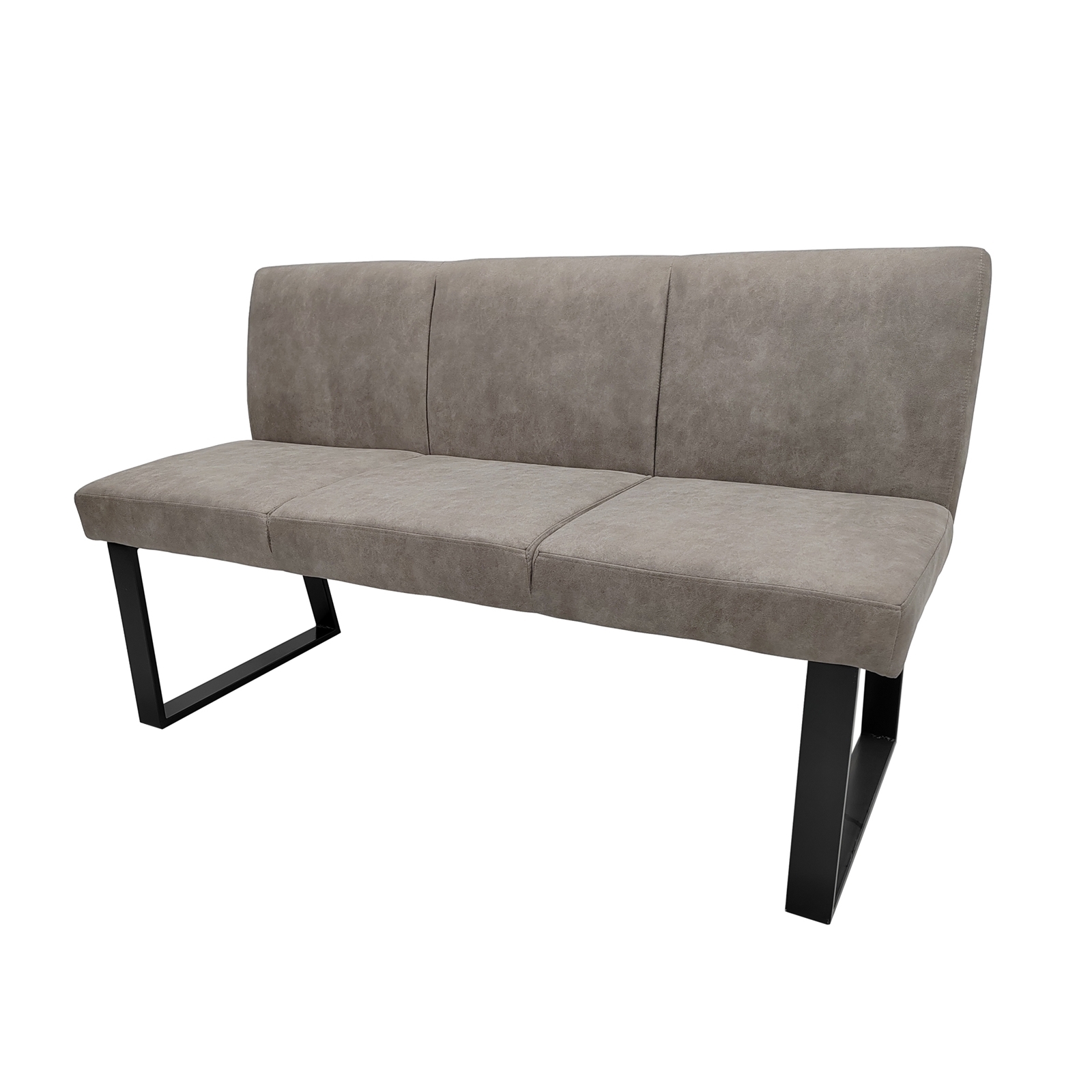 Die Sitzbank Vemal fügt sich harmonisch in Ihr Wohnambiente ein und verleiht Ihrem Zuhause modernen Retro-Charme. Sie besticht durch ihren Kunstlederbezug in Wildlederoptik. Mit gepolsterter Sitzfläche und Rückenlehne lässt es sich bequem darauf Platz nehmen. Die Beine aus Flacheisen sorgen für einen sicheren Stand. Die Sitzbank lässt sich perfekt mit Stuhl und Eckbank der Serie Vemal kombinieren. Maße 140 x 82 x 60 cm, Sitzhöhe 49 cm, Sitztiefe 60 cm