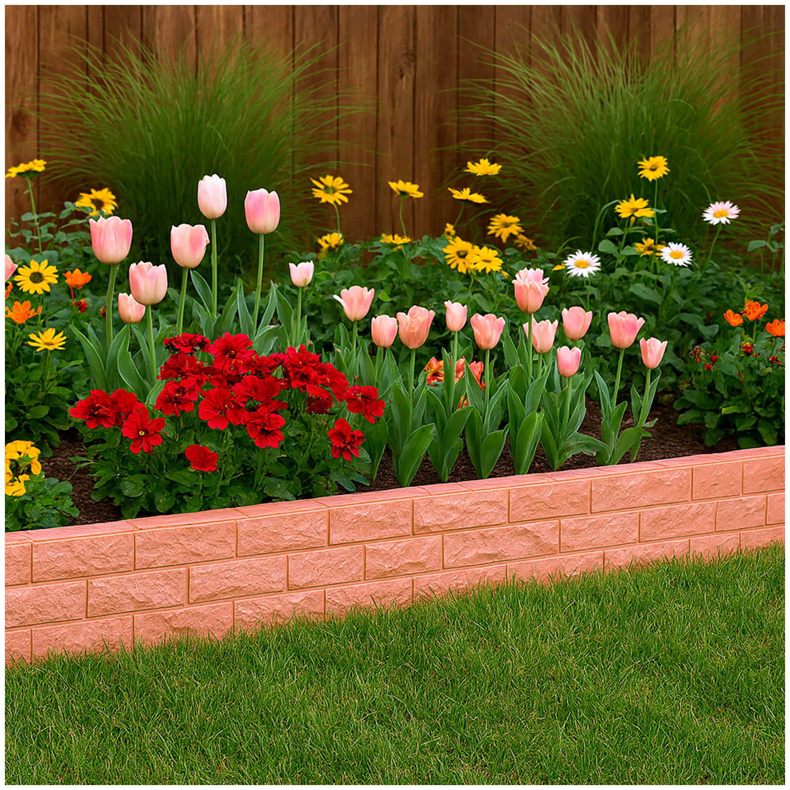 Stilvoller Abschluss für Ihr Gartenbeet! Verleihen Sie Ihrem Garten den letzten Feinschliff mit der dekorativen Beetumrandung „Nessa“. Die klassische Ziegelsteinoptik sorgt für ein stilvolles und gepflegtes Erscheinungsbild – ob rund ums Blumenbeet, Gemüsebeet oder entlang von Wegen. Dank des witterungsbeständigen Kunststoffs bleibt die Einfassung das ganze Jahr über schön und stabil. Anwendung: Einfach die Module aneinanderstecken und mit dem integrierten Erdspieß fest im Boden verankern – fertig ist Ihre neue Beetbegrenzung!