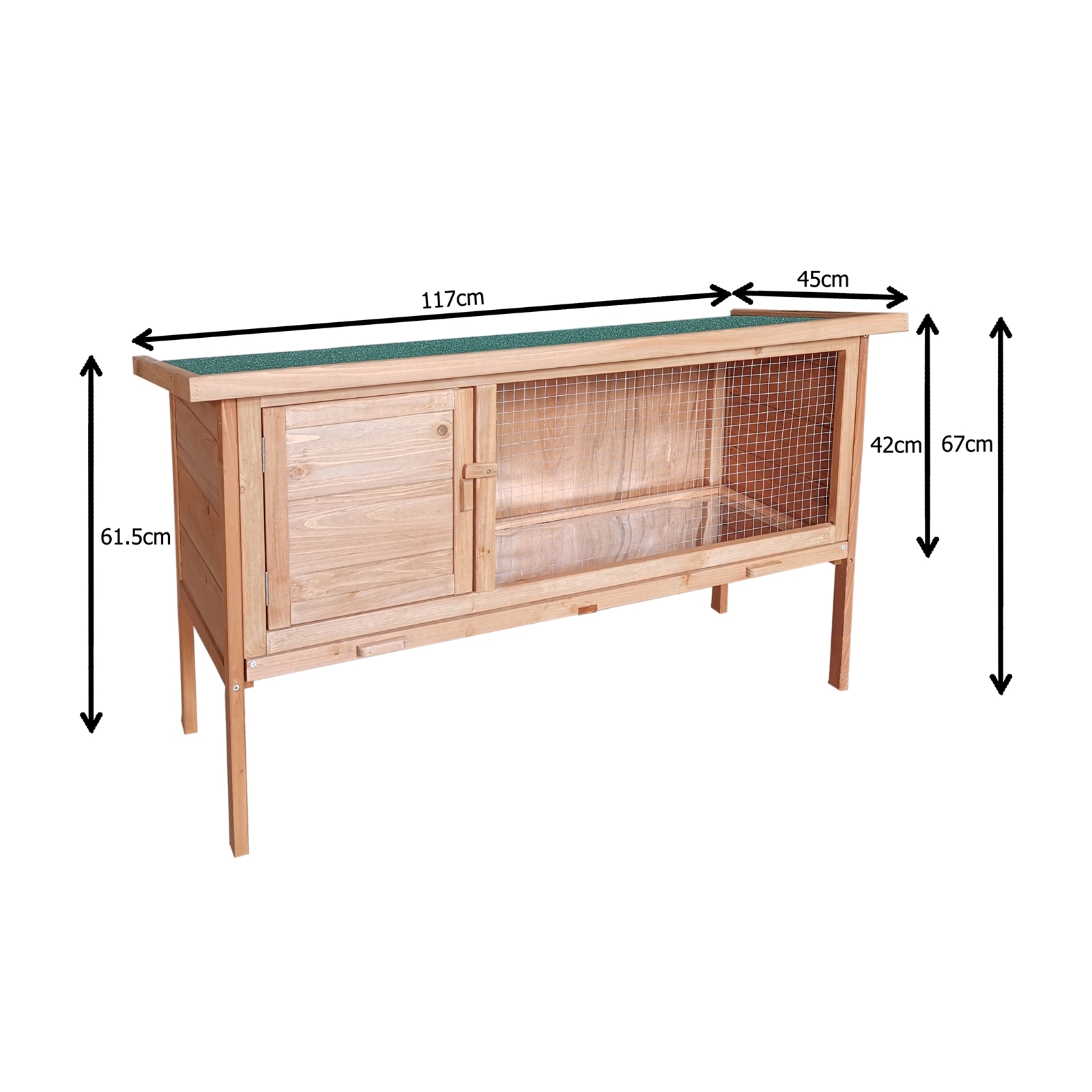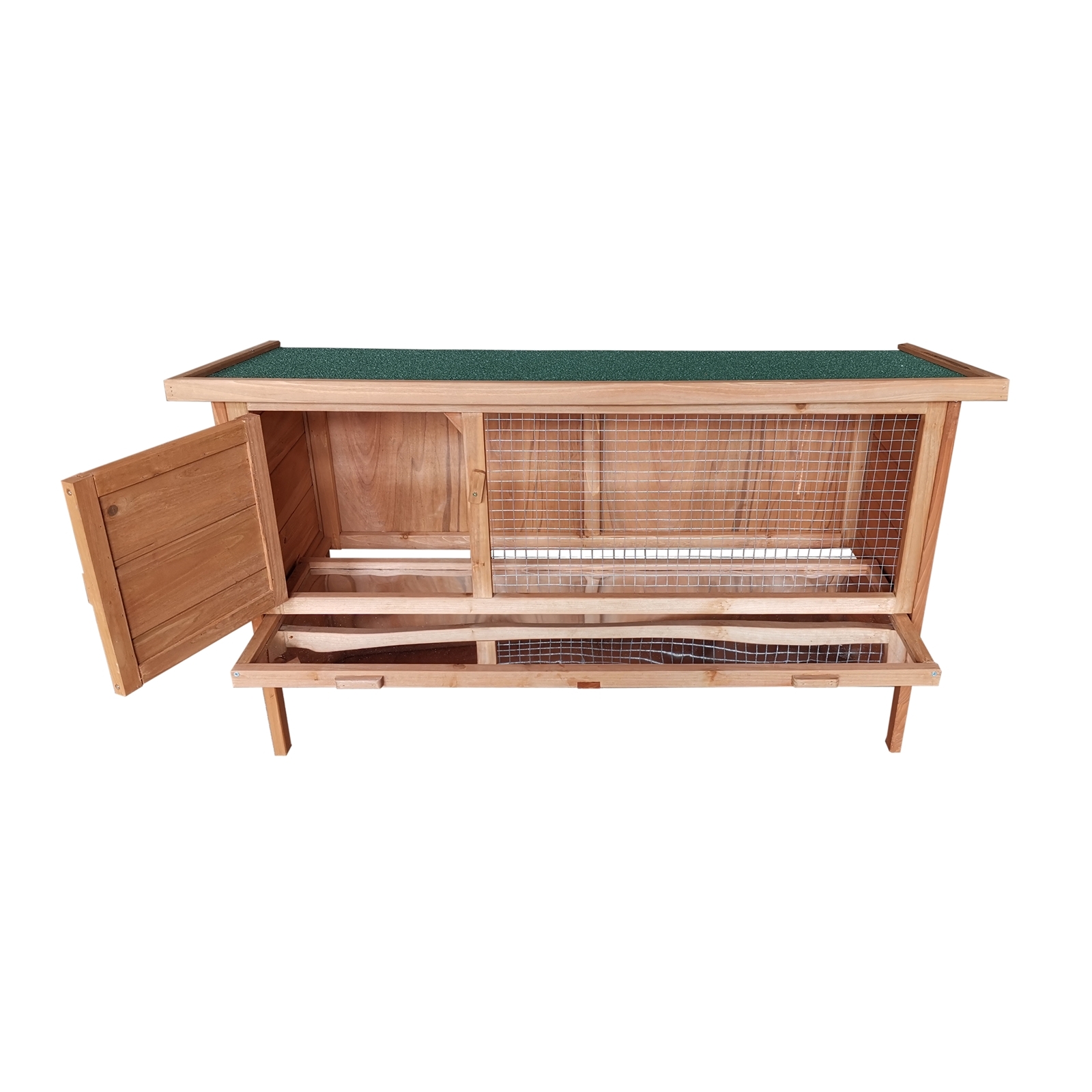 Bieten Sie Ihren Kaninchen oder Meerschweinchen ein sicheres und komfortables Zuhause mit diesem hochwertigen Hasenstall aus Holz. Der Stall kombiniert einen geschützten Rückzugsbereich mit einem vergitterten Auslauf, sodass Ihre Tiere frische Luft und Bewegung genießen können. Die herausziehbare Wanne sorgt für eine besonders einfache Reinigung.