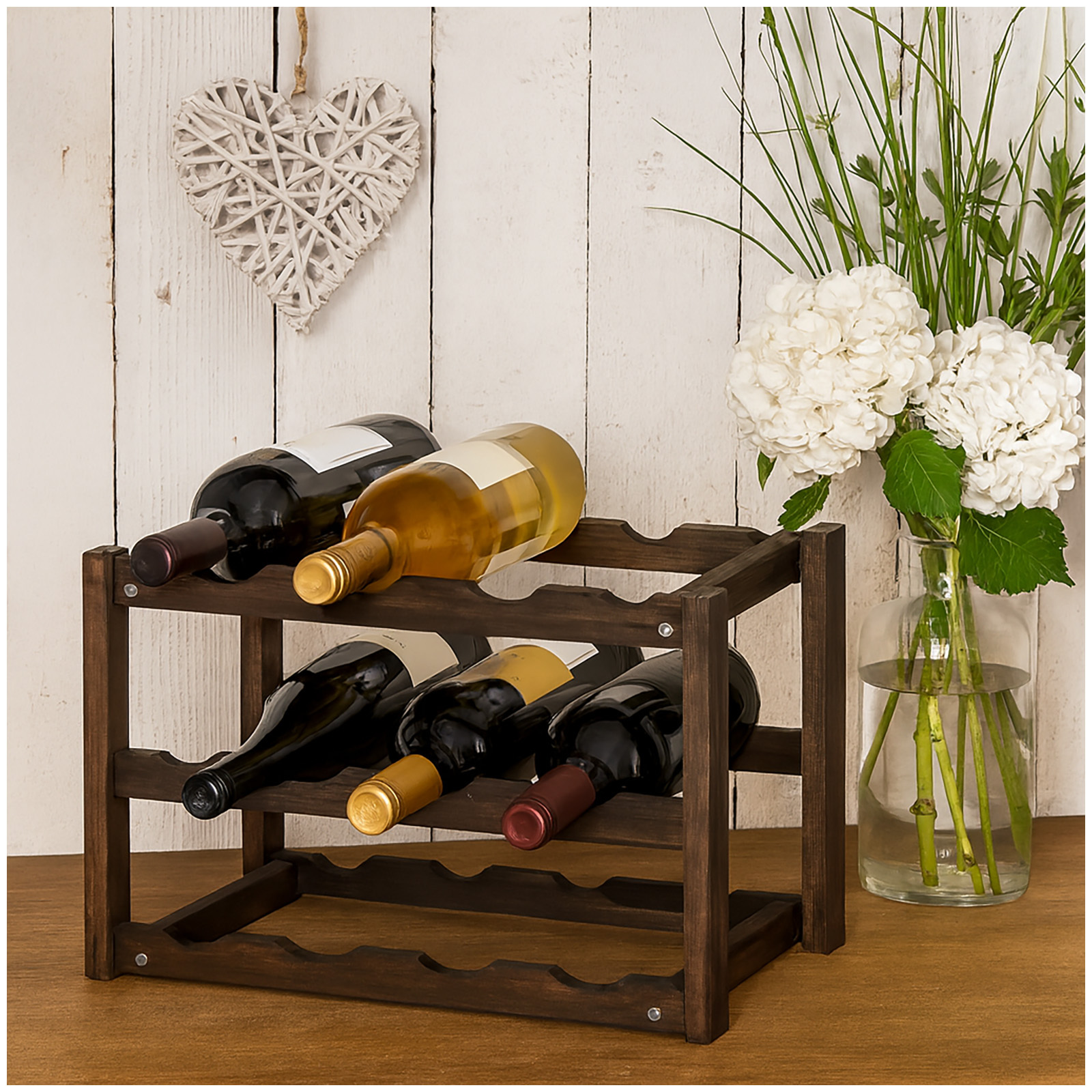 Dieses kompakte Weinregal aus Holz ist die stilvolle Lösung zur Aufbewahrung Ihrer Lieblingsweine. Mit seinen Maßen von 42 x 30 x 26 cm (B/H/T) und 3 stabilen Ebenen bietet es Platz für bis zu 12 Weinflaschen. Jede Ebene ist bis 5 kg belastbar – ideal für Rotwein, Weißwein oder Sektflaschen.