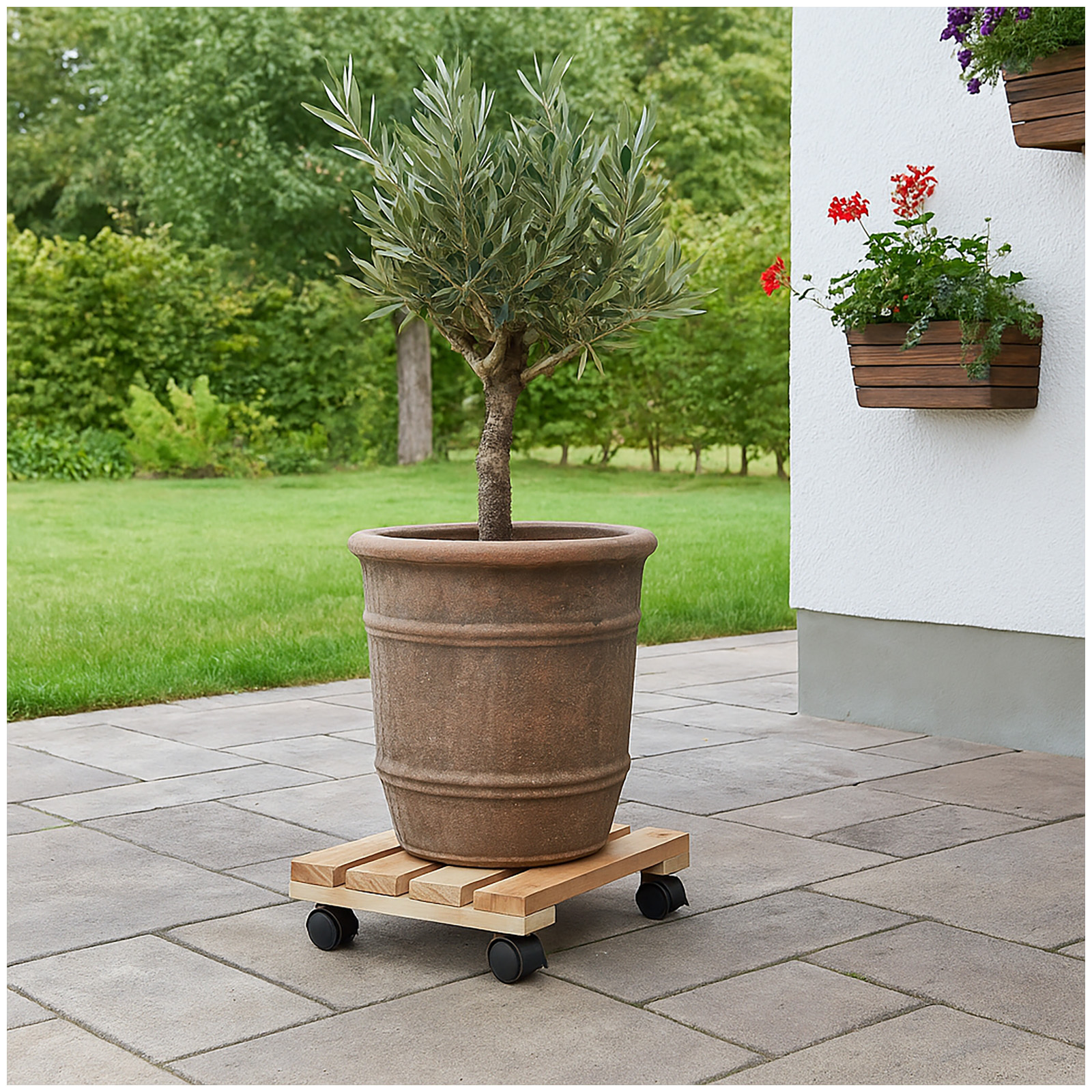 Der robuste Rolluntersetzer eignet sich ideal für den Innen- und Außenbereich und bietet eine stabile Basis auch für schwere Pflanzenkübel.