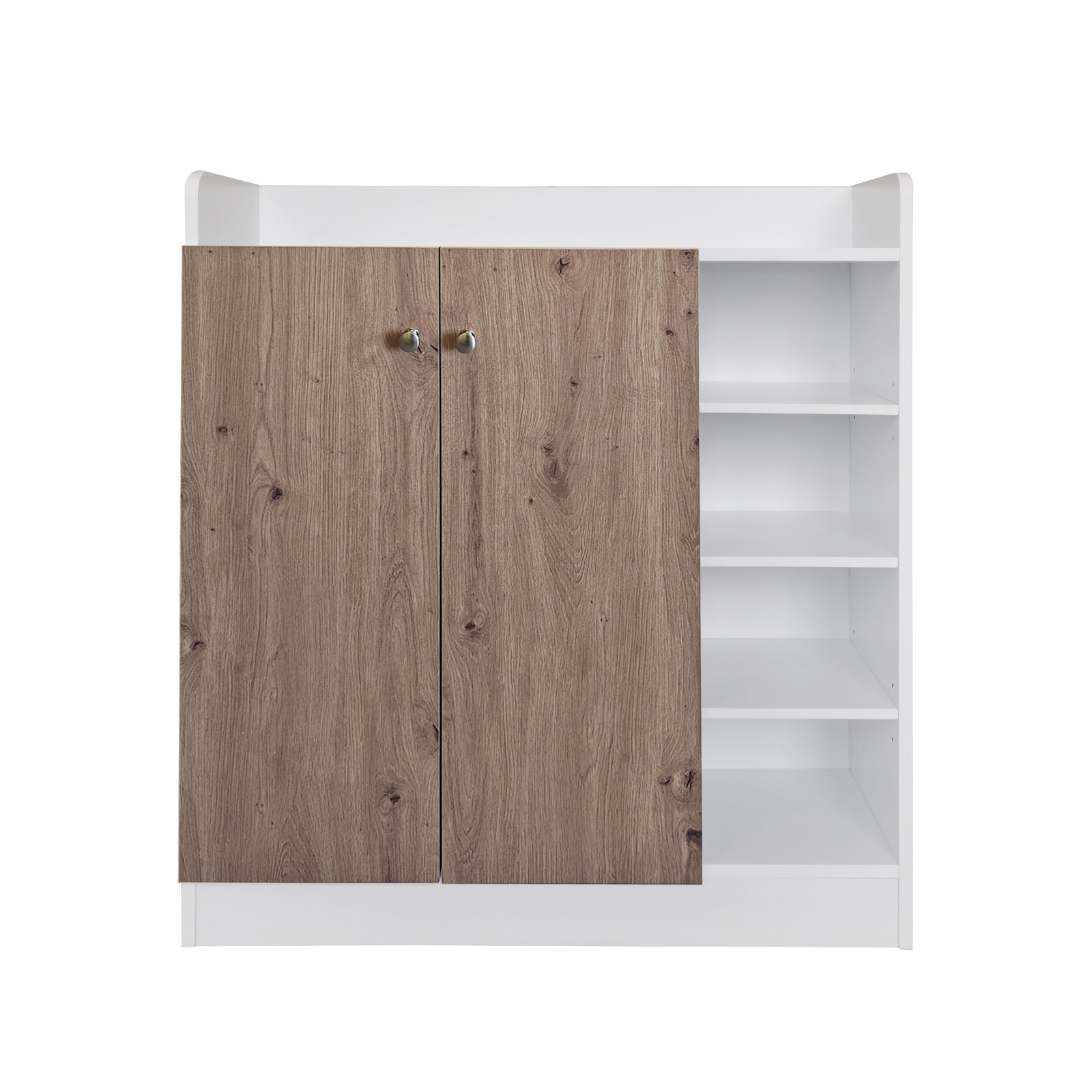 Dieser praktische Mehrzweckschrank überzeugt durch sein zeitloses Design und seine funktionale Aufteilung. Mit kompakten Maßen von B/H/T 83 x 90 x 30 cm passt er ideal in Wohnzimmer, Schlafzimmer, Büro, Flur oder Kinderzimmer. Hinter den Türen befinden sich 4 geräumige Regalfächer und sorgen für genügend Stauraum. Auf der rechten Seite stehen Ihnen offene Ablagefächer zur Verfügung – perfekt für dekorative Wohnaccessoires oder Alltagsgegenstände.