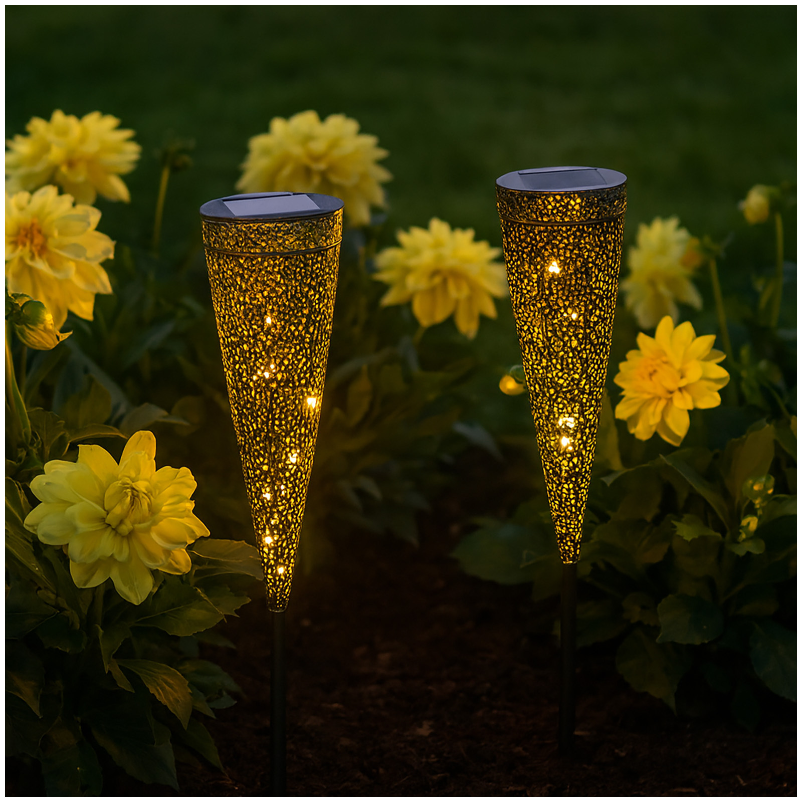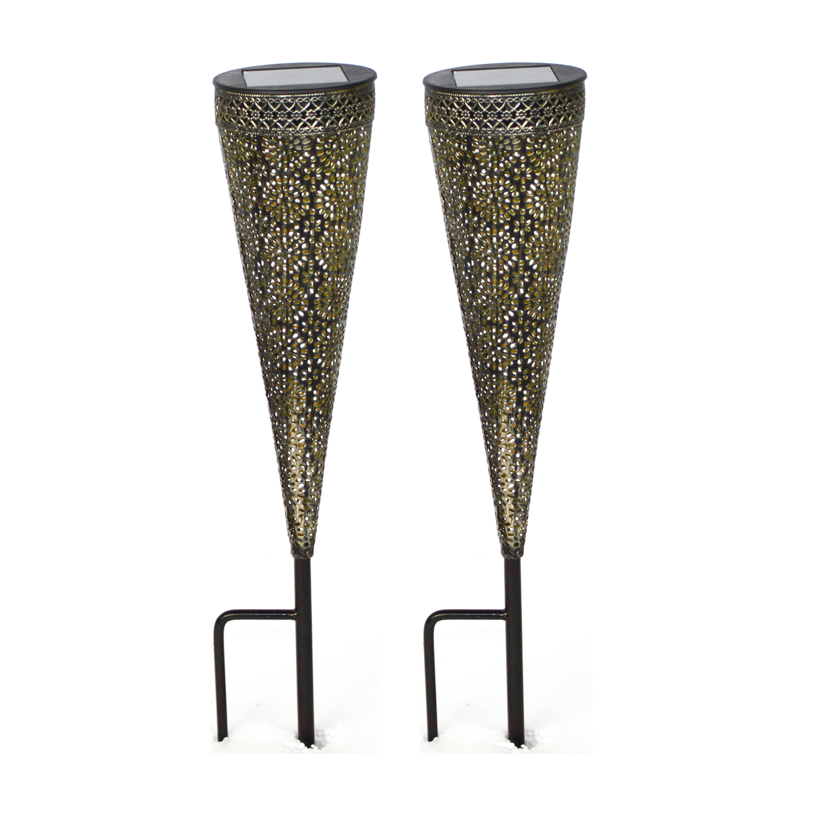 HTI-Living warmweiße Gartenleuchten Solarstecker Luna 2 Stück Metall mit filigranem Mu