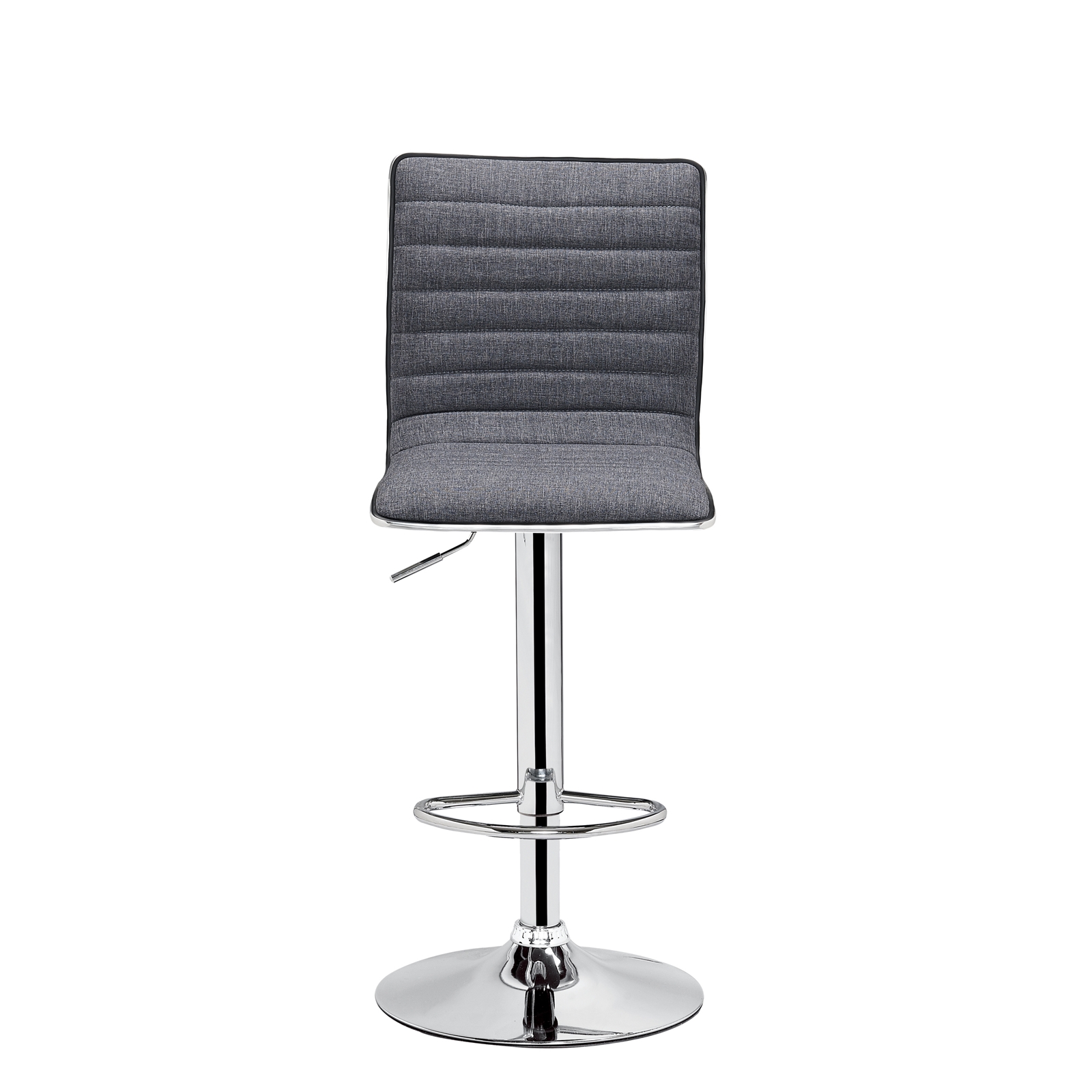 Der Barstuhl Jax mit textilem Bezug in dezentem Grau und silbernem Metallfuß fügt sich harmonisch in ein modernes Wohnambiente ein. Mit verstellbarer Sitzhöhe, Rückenlehne und Fußstütze lässt es sich bequem an der Hausbar oder dem Küchentresen Platz nehmen. Maße 40 x 96-117 x 49 cm, Sitzhöhe 60-80 cm, belastbar bis 90 kg